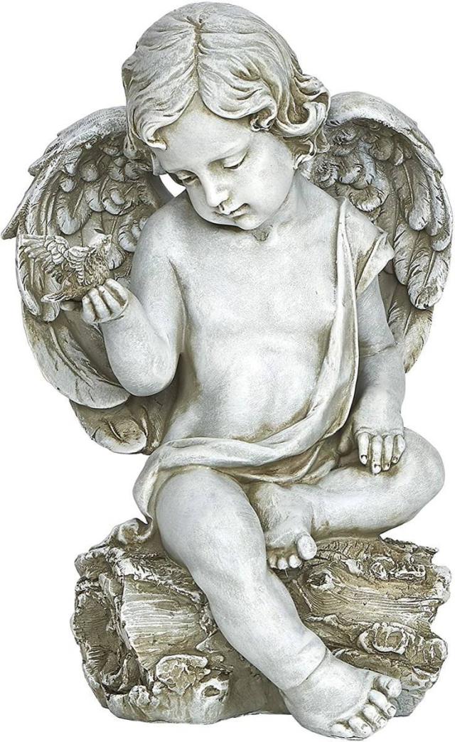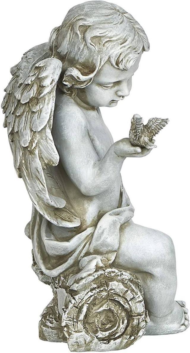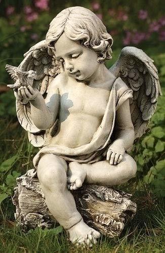 ローマン製 鳩と遊ぶ、子供の天使(ケルブ)像 彫像 彫刻/ エンジェル ガーデニング 作庭 園芸 広場 お庭 ピロティ 玄関 噴水 (輸入品