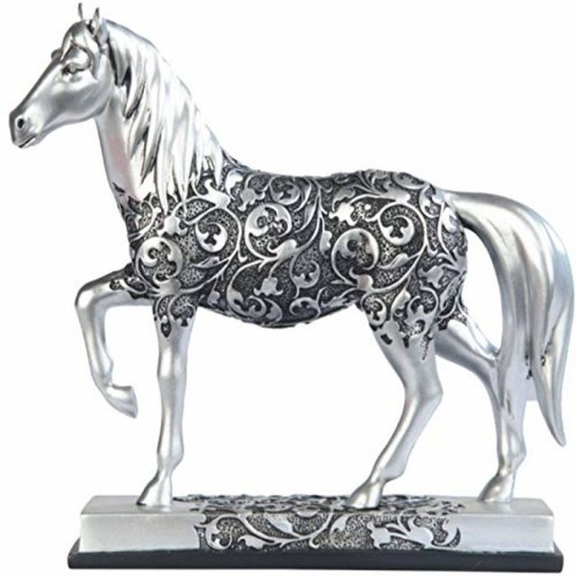 西洋彫刻 速足(はやあし)で駆ける シルバートーンの刻印デザインが刻まれた馬の彫像/ 奔馬 競馬場 インテリア プレゼント 贈り物(輸入品