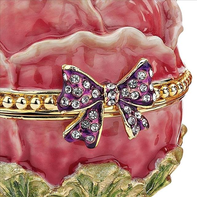 庭園の宝物コレクション ロマノフ・スタイル エナメル ファベルジュエッグ:バラ彫刻 彫像/ 宝石箱 隠し箱 化粧室 プレゼント贈り物(輸入品