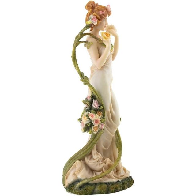 【アルフォンス・ミュシャ彫像 コレクション-アールヌーボー「四つの花 バラ」「薔薇の女性」装飾的な彫刻 置物(輸入品】
