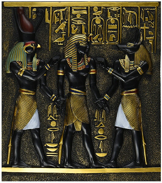 【古代エジプト彫刻 ホルス神 とアヌビス神の間に立つラムセス1世の壁画彫刻 彫像/ カイロ 神殿 王宮 ピラミッドレリーフ贈り物(輸入品)】