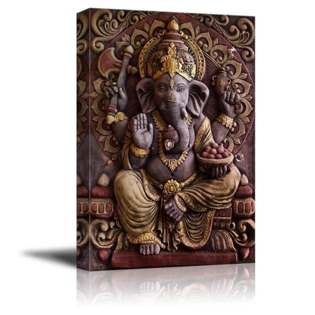 【wall26 - Sculpture of Gannesa Hindu God - Canvas Art Wall Decor - 16" x 24"】