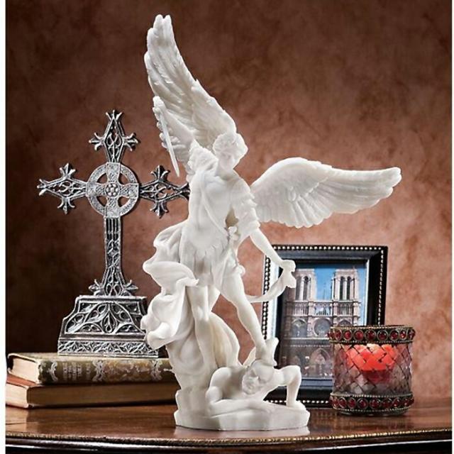西洋彫刻 ゴールド&ピューター色 悪魔を踏む大天使ミカエル 守護天使エンジェル彫像 彫刻/ カトリック教会 祭壇 聖霊 福音 洗礼 贈り物(輸入品)