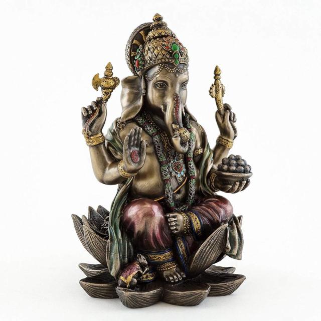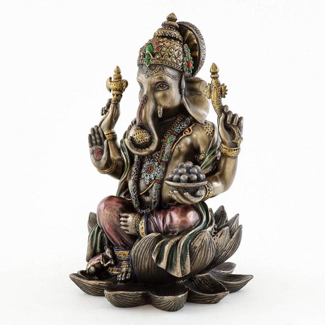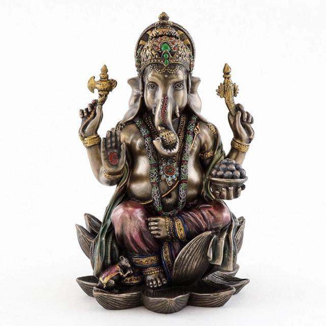 【Top Collection Ganesh Statue Sitting on Lotus Pedestal - Lord of SuccessSculpture in Premium Cold Cast Bronze with Colored Accents - 7.25-InchCollectible Hindu God Ganesha Figurine】