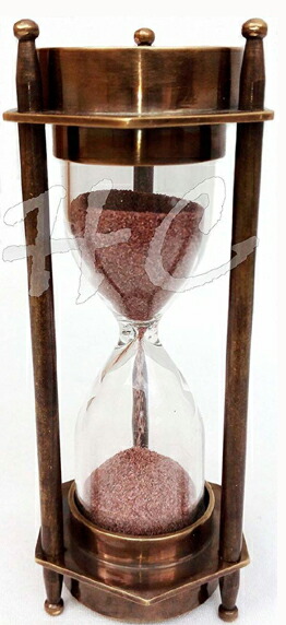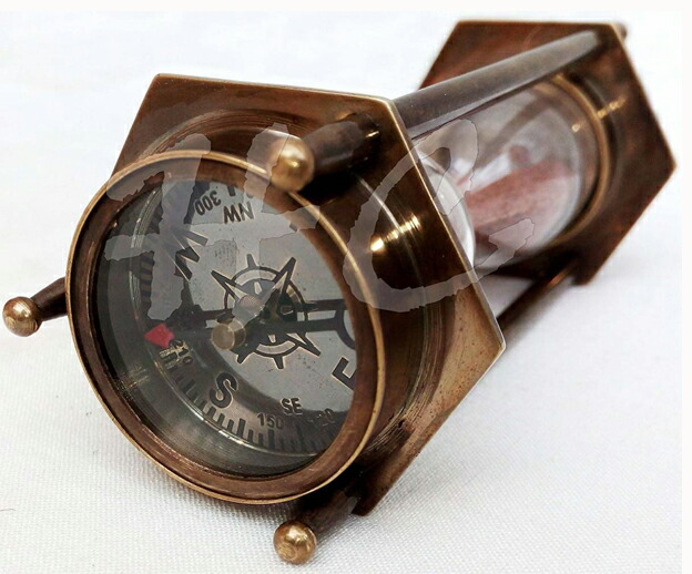 【5" Decorative Brass Sand Timer Hourglass with Antique Maritime Brass Compass】