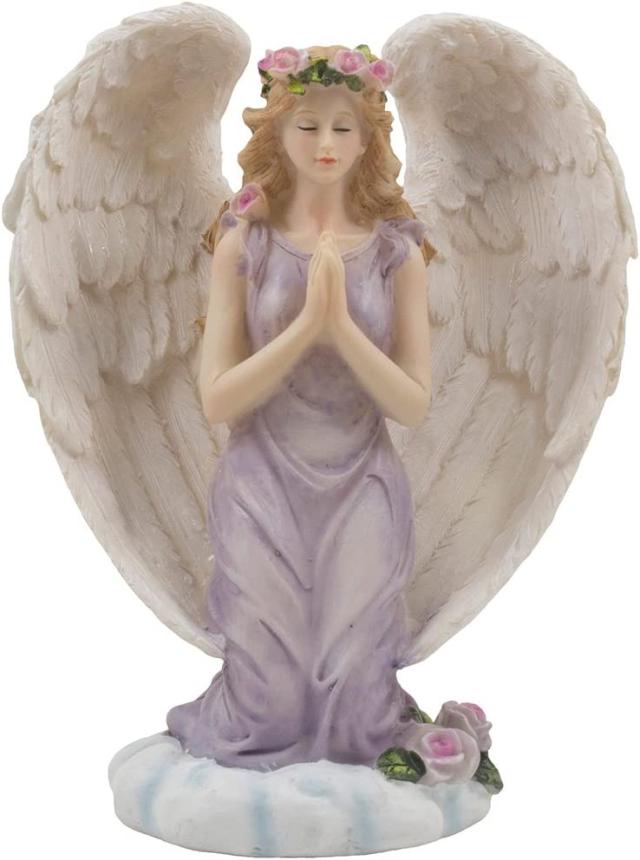 【天の雲の上で、ひざまづく、バラの冠を付けた、祈りの天使 彫刻 彫像 置物 芸術的な感動の贈り物 精神的、宗教的キリスト教 ホーム装飾 / (輸入品)】