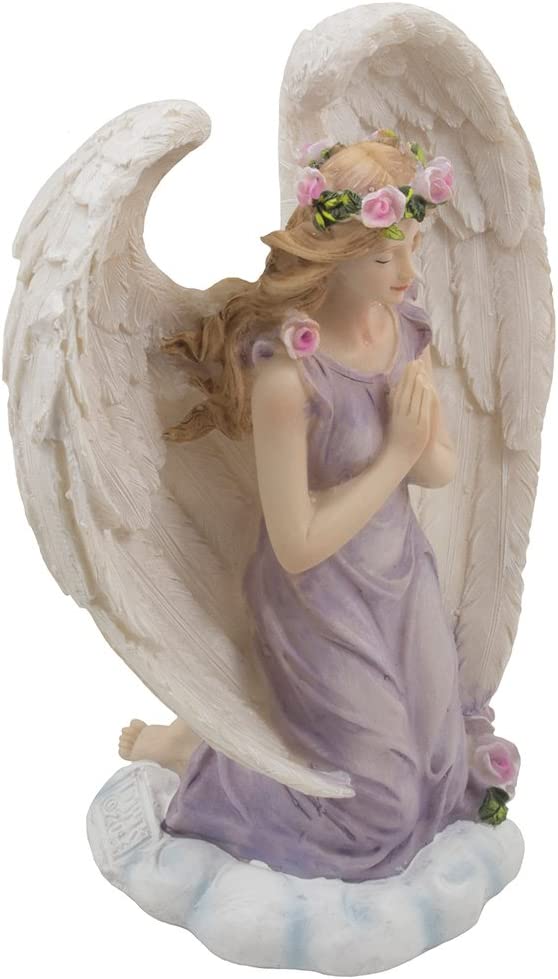 【Kneeling Angel in Prayer Figurine on a Heavenly Cloud with Accents of Roses for Spiritual, Religious and Christian Home Decor Sculptures or Statues As Artistic Inspirational Gifts】