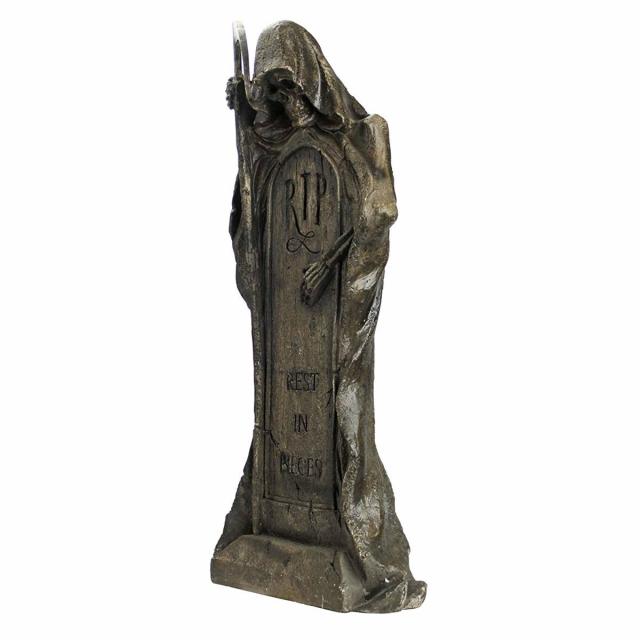 墓石を抱いて休むグリムリーパー(死神)ハロウィーン ゴシック風 ガーデン装飾 彫像彫刻 高さ約63cm(輸入品)