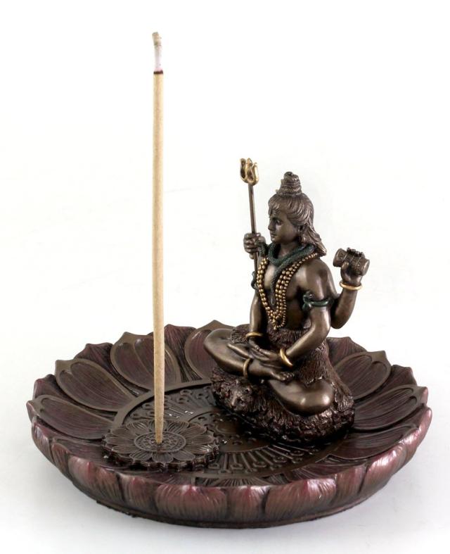 蓮に座るシヴァ神 お香立て(香炉)ブロンズ風 彫像/ ヒンドゥー教 世界の創造、維持、再生を司る最高神輸入品/アロマスタジオ リラクゼーションハウス エスニック ヨガ パブ プレゼント贈り物(輸入品)