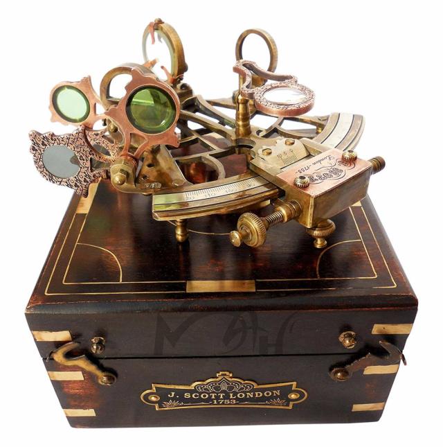 【真鍮製 船の航行用 六分儀 ハードウッドボックス(箱)付き 彫刻 彫像 お祝い プレゼント 贈り物 記念品 ギフト(輸入品)】