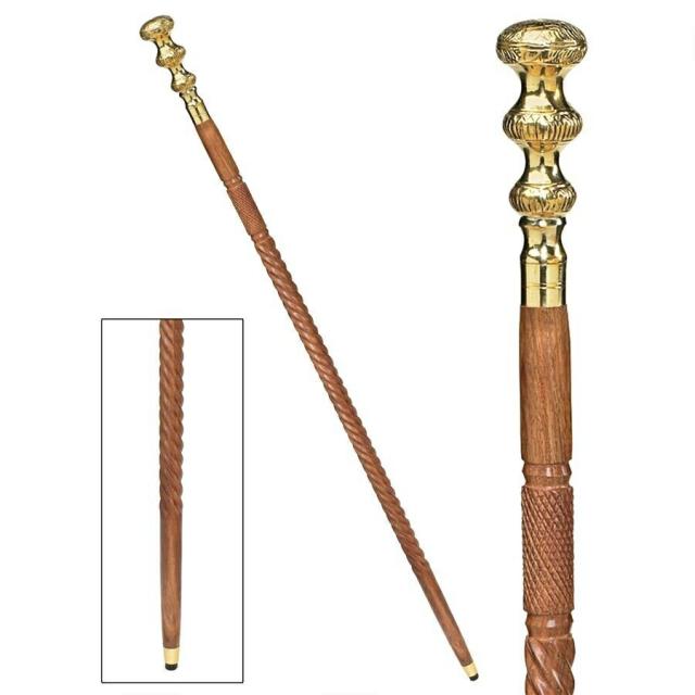 【Design Toscano Three Gold Saucers Gentleman's Walking Stick, 35 Inch, Brass Handle and Hardwood Cane, Brass】