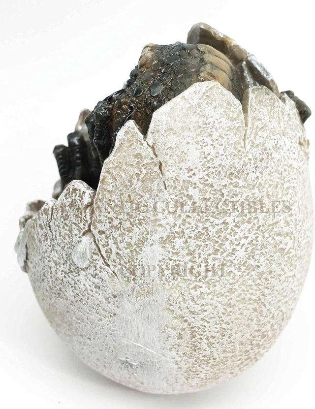 ティラノサウルス・レックスの卵 恐竜置物 孵化し、割れた卵から、顔を出す恐竜の赤ちゃん レプリカ 彫刻 彫像 中生代白亜紀末期 北アメリカ大陸 肉食恐竜 ジュラシック・パーク(輸入品)