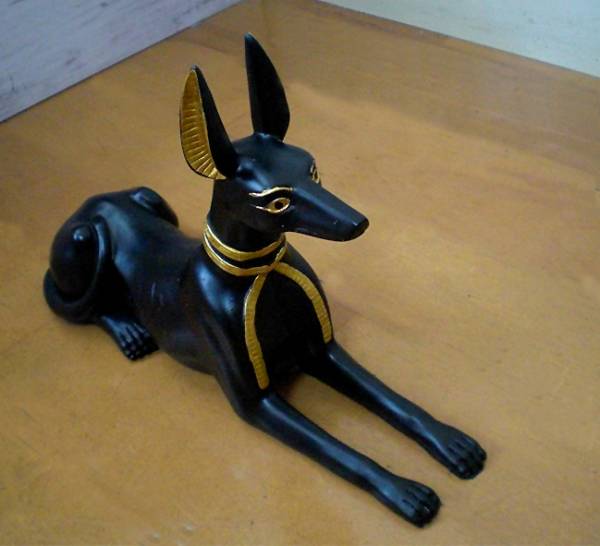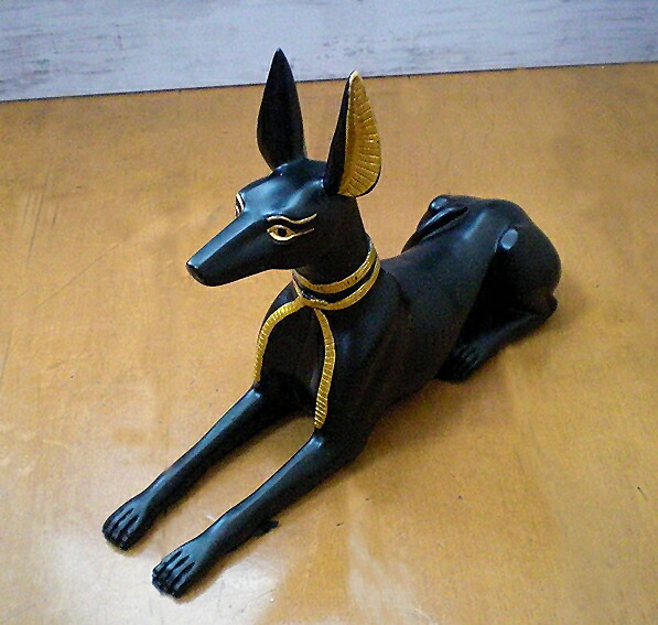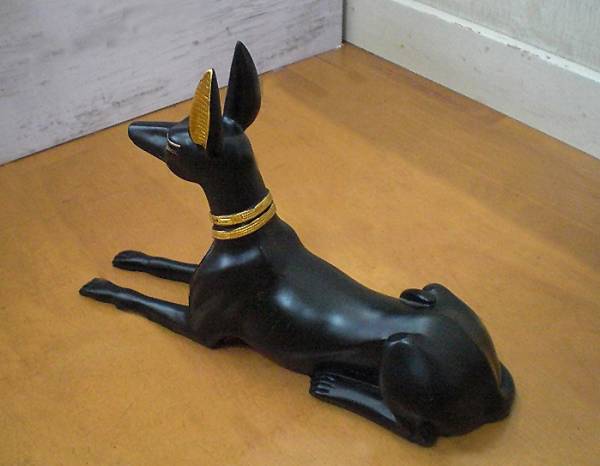 古代エジプトの座るアヌビス神(犬)の彫像