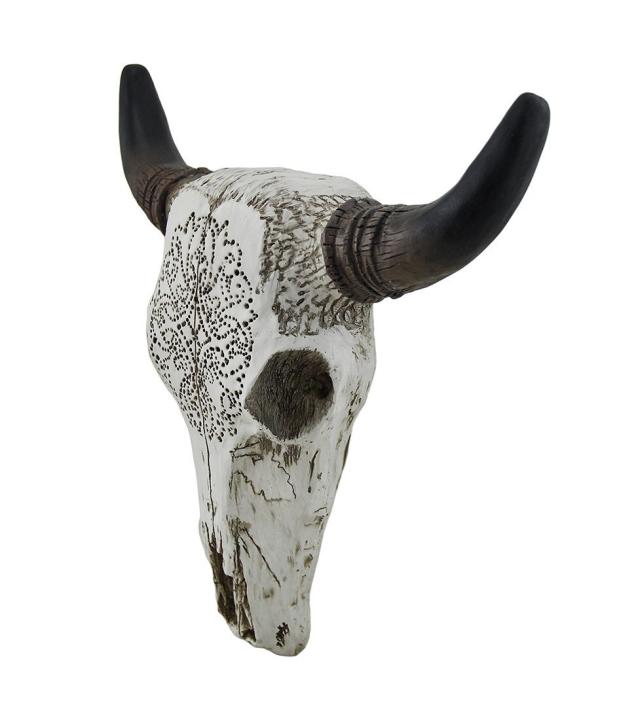 【Resin Wall Sculptures 10837 Tribal Design Carved White Bull Skull Wall Hanging 12.5 X 13 X 3 Inches White】