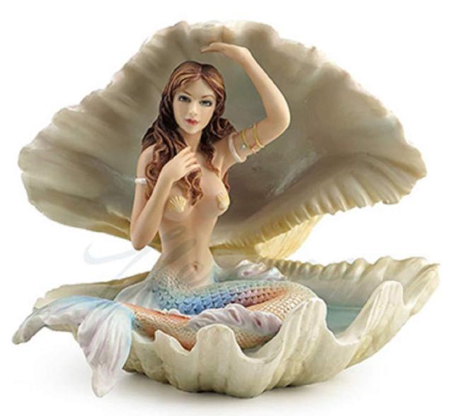 【Veronese Design Mermaid Sitting in a Seashell Sculpture】