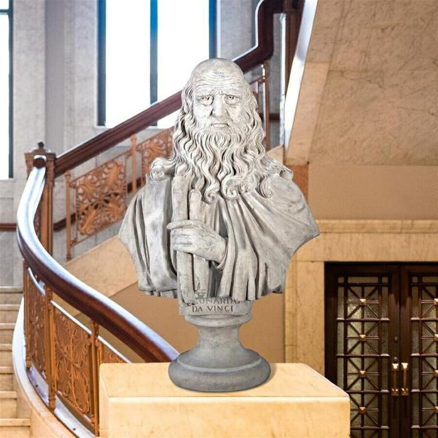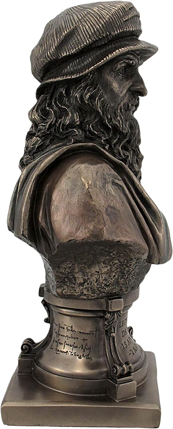 【Italian Renaissance Artist Leonardo Da Vinci Figurine 9 1/8 Inch Bronze Resin Stone Bust Statue】