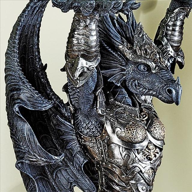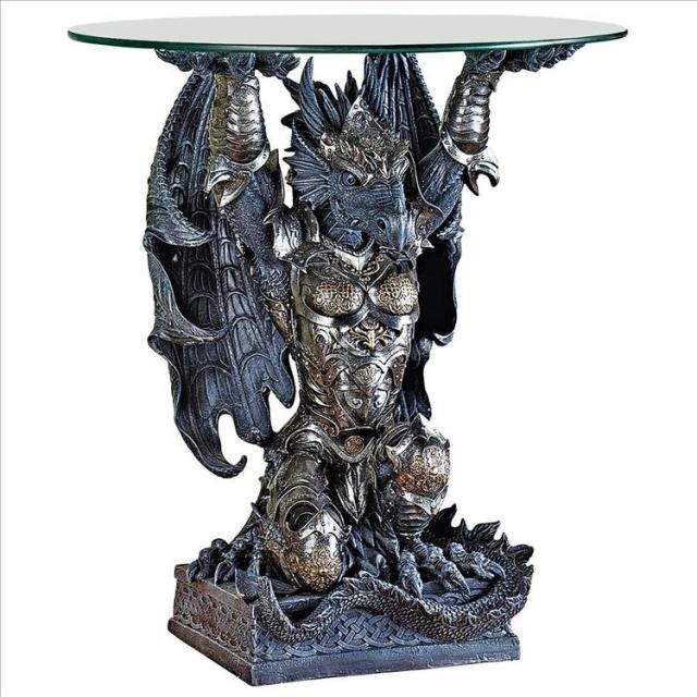 【Design Toscano Hastings, the Warrior Dragon Glass-Topped Sculptural Table】
