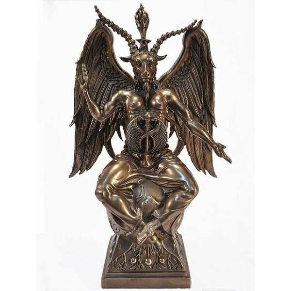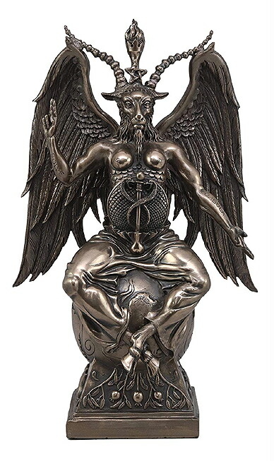 エブロス製 高さ 約38cm 地球の上に座った、バフォメット彫像 サバティック (サタン教会) 悪魔的 神秘的な祭壇の彫刻フィギュア(輸入品)