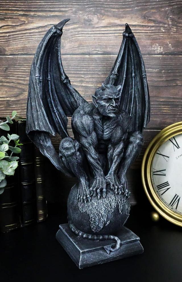 エブロス製 地球世界の上で、しゃがんでいる、デビル(ルシファー)サタン オカルト(終末論的な) 彫刻 彫像(輸入品)