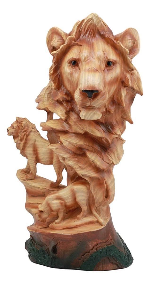 【Ebros African Savanna Safari Lion Bust Statue 13" Tall Lion King Pride Rock Lion Family Faux Wood Resin Figurine】