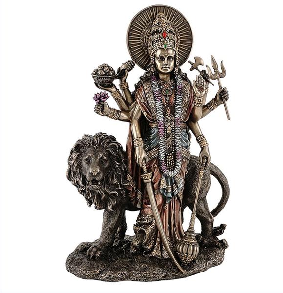 ヒンズー教 デーヴァ神族の女神 ドゥルガー(デュルガ) ブロンズ風 彫刻 彫像 高さ約28cm/ ヒンドゥー教の女神「近づき難い者」戦いの女神准 胝観音 突伽天女 塞天女(輸入品)