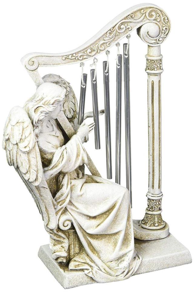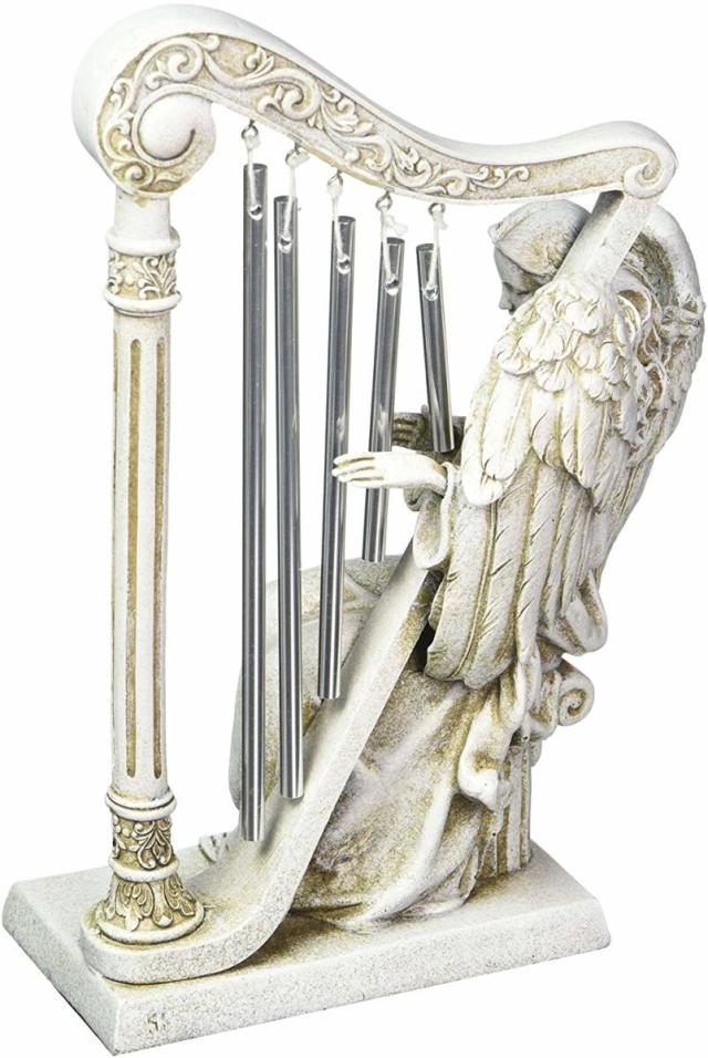 Joseph's Studio by Roman Inc., Angel with Windchime HARP, Garden Collection, Religious Statue, Holy Family, Memorial, Angel, Patron Saint, Garden D?cor