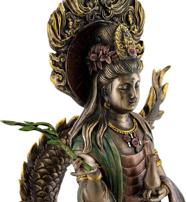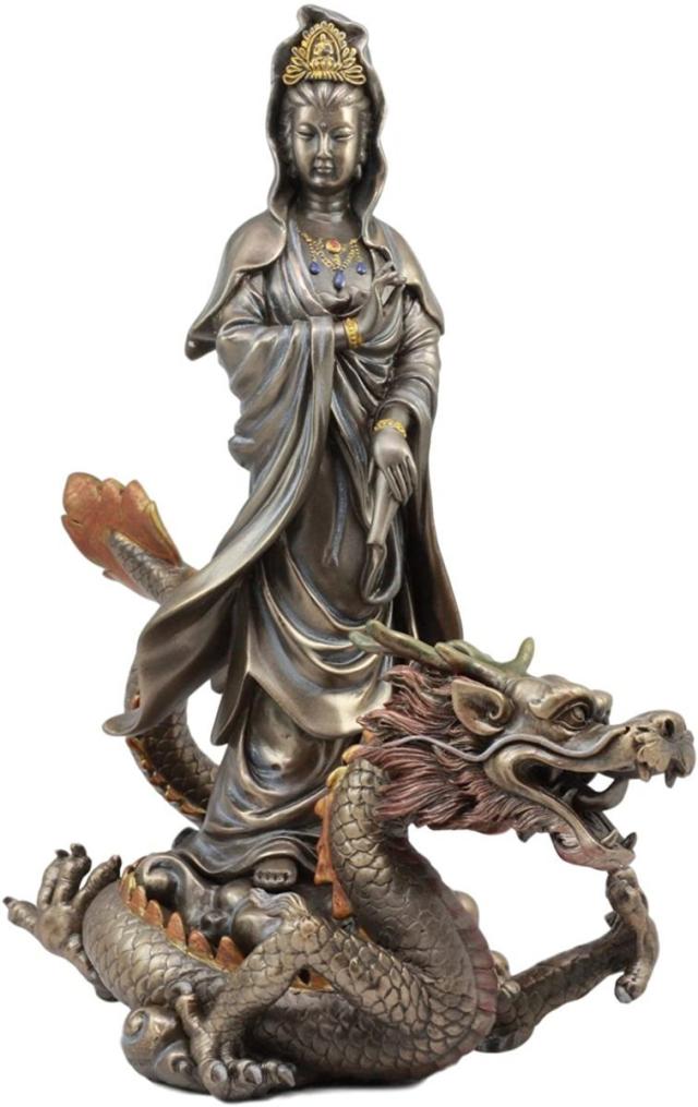 トップ・コレクション製 慈悲を持って救いの手を差し伸べる、騎龍観音菩薩 -ブロンズ風 彫像 彫刻 大乗仏教 大幸運 三十三観音 龍神のパワー 新築祝い(輸入品)