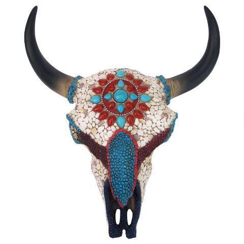 【精霊の平原の戦士 模造の宝石に鏤められた、牛の頭蓋骨、厚さ 約10cm、フルカラー彫像 彫刻/ カフェ 焼肉店 ジンギスカン店 パブ プレゼント(輸入品)】