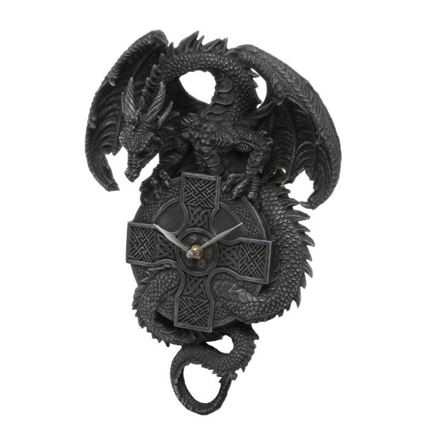 ドラゴンと十字架 ケルトクロスの彫刻 装飾時計 彫像/ゲームオブスローンズ 書斎 インテリア壁時計(輸入品)