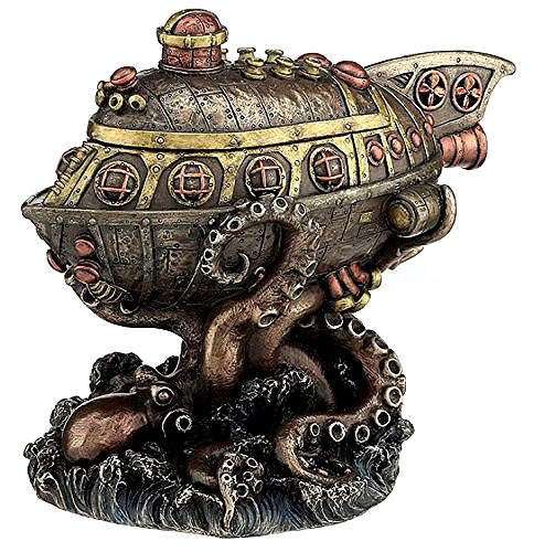 【Steampunk Submarine Vs. Octopus Trinket Box Statue】