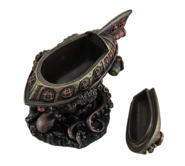潜水艦(サブマリン)対 タコ(蛸)の小物箱 スチームパンク調 彫像 彫刻/ 水中航行 Uボート 魚雷 ドレベル誕生日プレゼント贈り物(輸入品