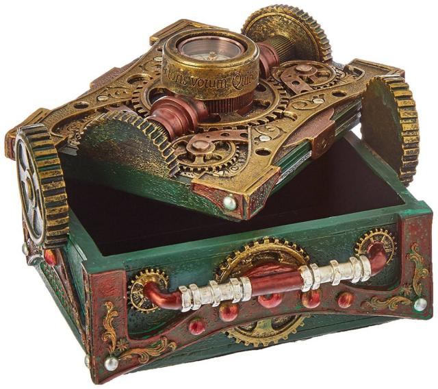 【スチームパンク風 コンパスの付いた 小物入れ、宝石箱(ジュエリーボックス)彫像オブジェ(輸入品)】