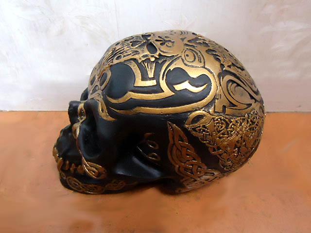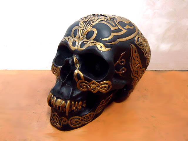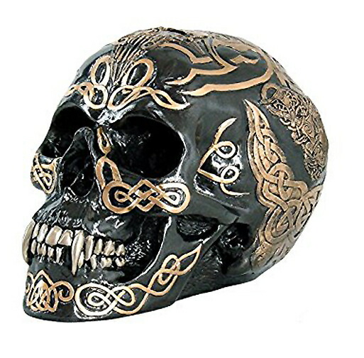 【7 Inch Black and Gold Color Celtic Pattern Skull Statue Figurine】