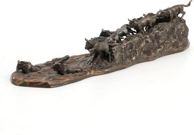 【アフリカ大陸 ヌーの大群の大移動 ブロンズ風フィギュア像 置物 彫像 長さ約43cm/大草原サファリ サバンナ プレゼント贈り物 (輸入品)】