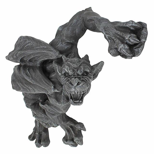 西洋彫刻 滑るように壁を這っている ガーゴイルの壁彫刻、グレイ色彫像/ 中世ヨーロッパ 守護モンスター ノートルダム寺院 お庭(輸入品