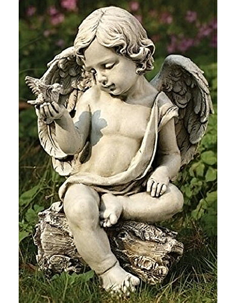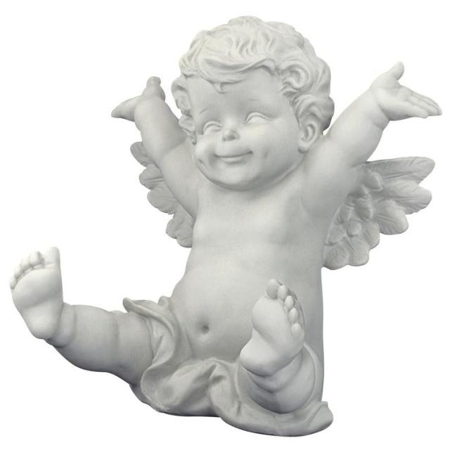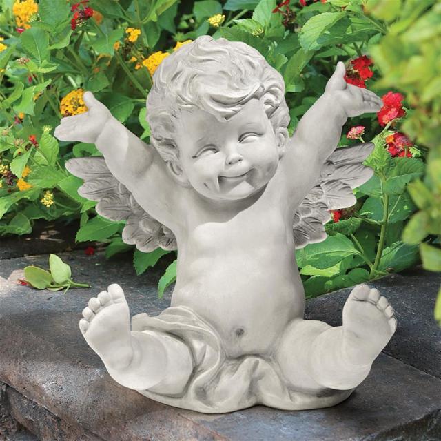 【飛び跳ねる子供の智天使(ケルビム像)西洋彫刻 装飾品 ガーデン彫像/ ガーデニングアクセント 庭園 園芸 お庭 芝生 プレゼント(輸入品)】