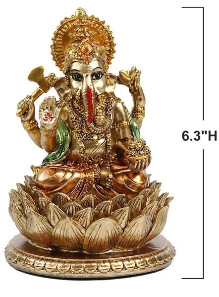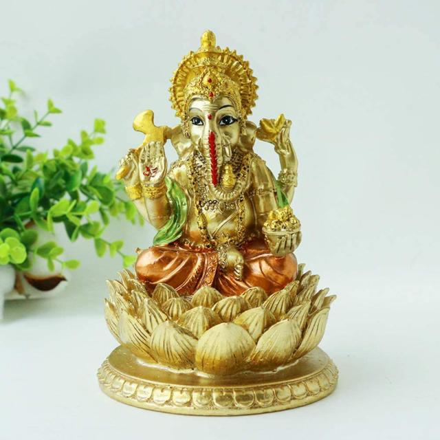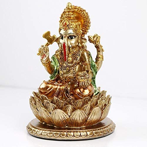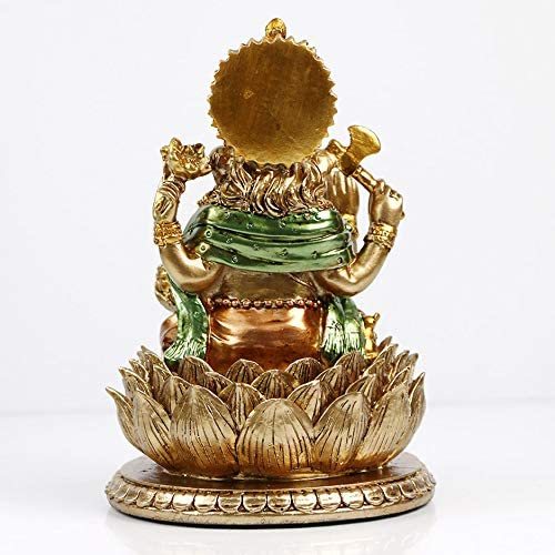ビューティフルクラフトマンシップ-ガネーシャは、インドの芸術家と特別な技法で彫刻され、赤と緑の色のアクセントの光沢のあるメタリックゴールドフィニッシュで手塗りされた樹脂で作られたヴィンテージの彫像のように見えます。