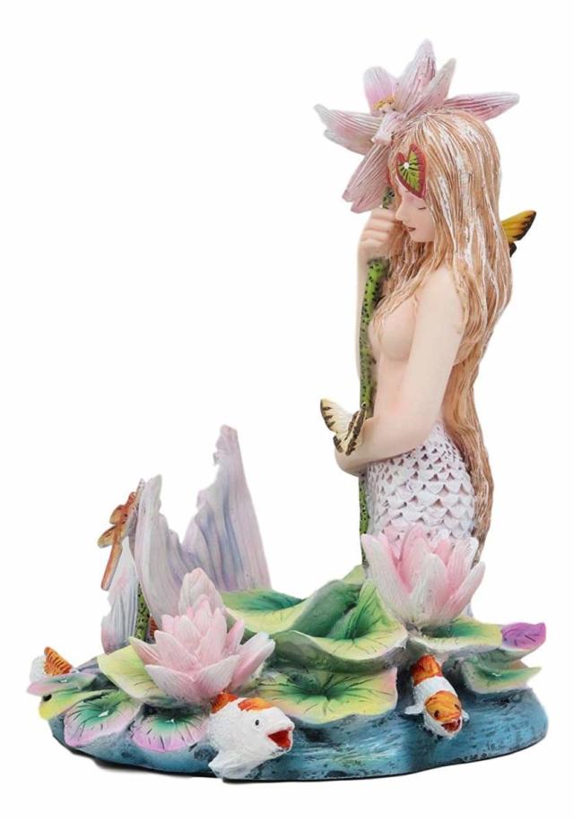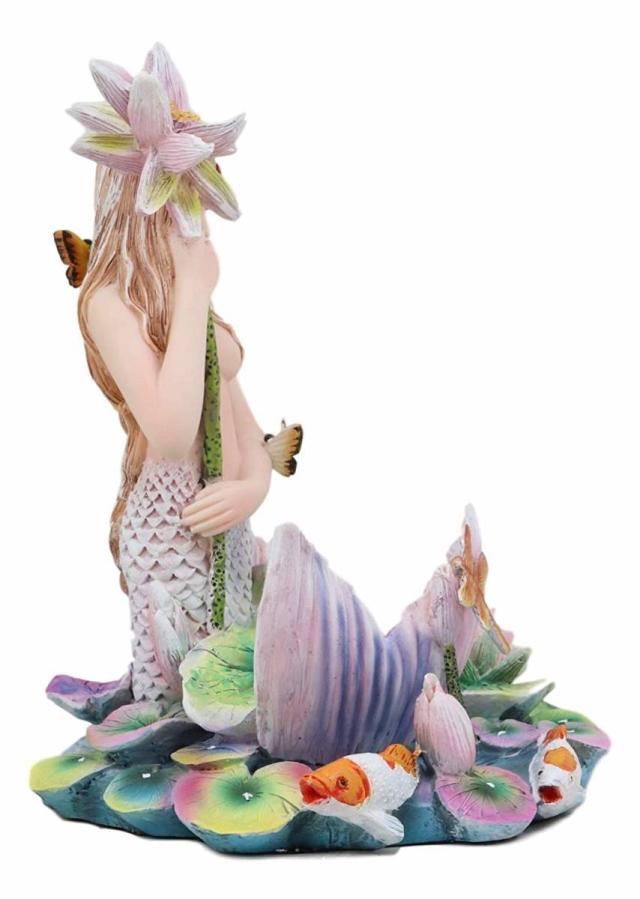 【Ebros Sheila Wolk Rainbow Pool Mermaid by Flower Umbrella Dragonfly and Koi Fishes in Pond Statue 6.25" Tall Mythical Fantasy Siren Mermaids Sea Life Coastal Nautical Decor Figurine】