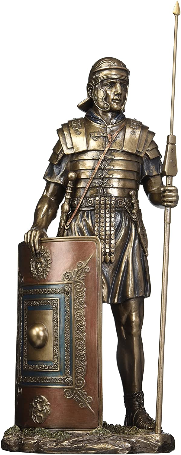 【14.5" Ancient Roman Soldier w/ Javelin & Shield Warrior RomeStatue Sculpture】