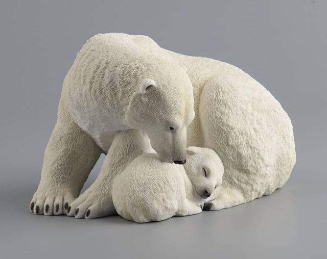 母シロクマに抱きしめられる ホッキョクグマの子彫像 彫刻 幅 約20cm/ 書斎 コレクション お祝い 記念品 誕生日プレゼント贈り物(輸入品