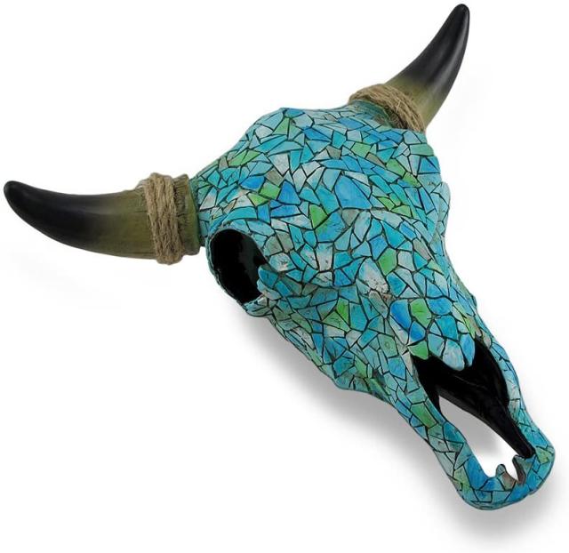 (牡牛) 頭蓋骨の壁掛け モザイク ターコイズ スティア彫像/ 焼き肉店 ジンギスカン牧場 乳牛 エスニックレストラン プレゼント(輸入品