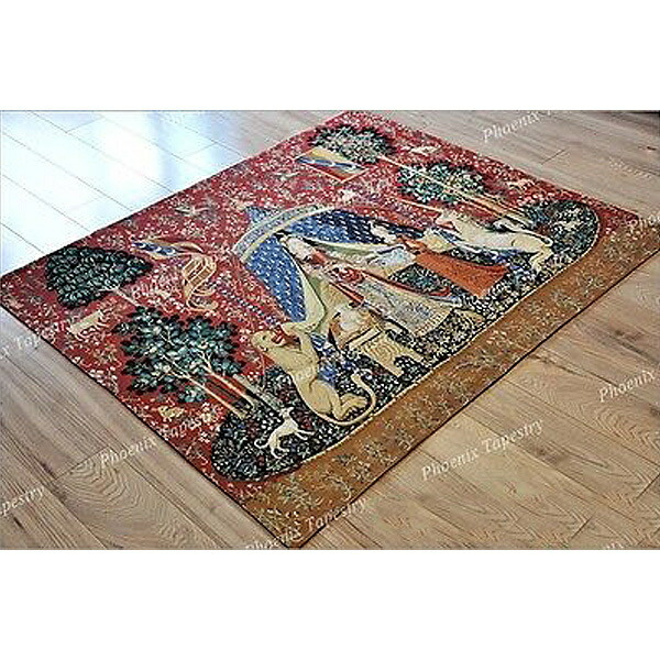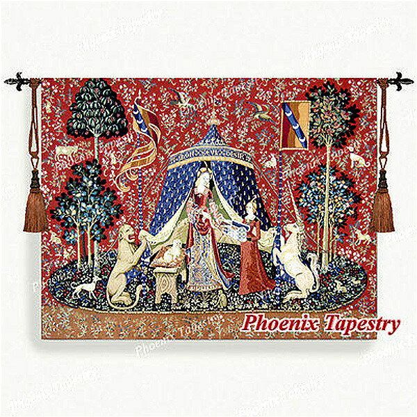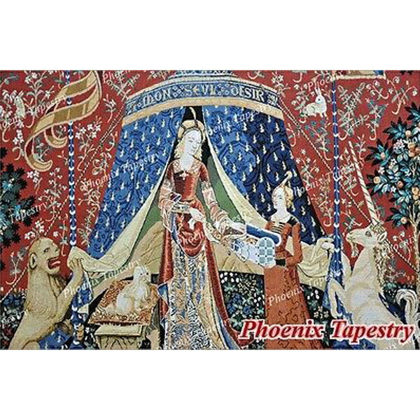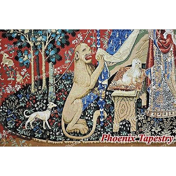 西洋美術 「我が唯一つの望みに」貴婦人と一角獣(ユニコーン)中世アート 美しいジャガード織り壁掛けタペストリー中世美術 (ミディアム)輸入品 )