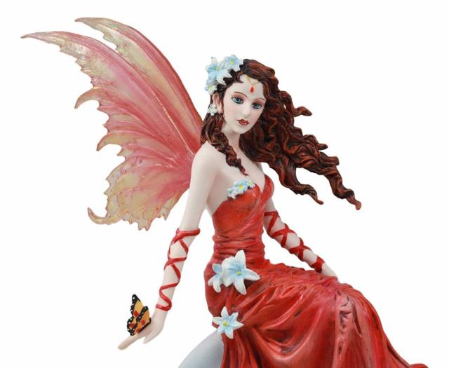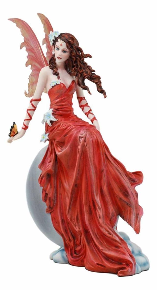 【天体の月明かりの深紅色のロマンス・レッドガウンを着たリリー・ウェディングフェアリー(妖精)装飾神話ファンタジーフィギュア彫像高さ 約30cm ネネ・トーマス作(輸入品)】