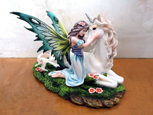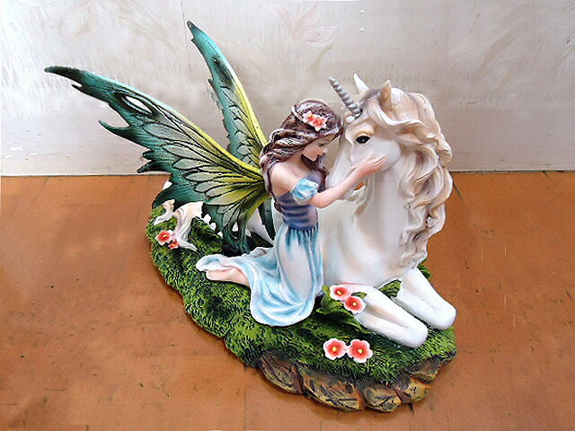 ユニコーン(一角獣)と妖精彫像