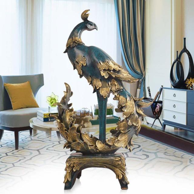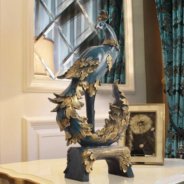 レトロ風フェニックス彫刻 彫像 居間オフィス装飾ギフト(ゴールドブルー)/ 貴賓室 VIPルーム スウィートルーム プレゼント 贈り物(輸入品