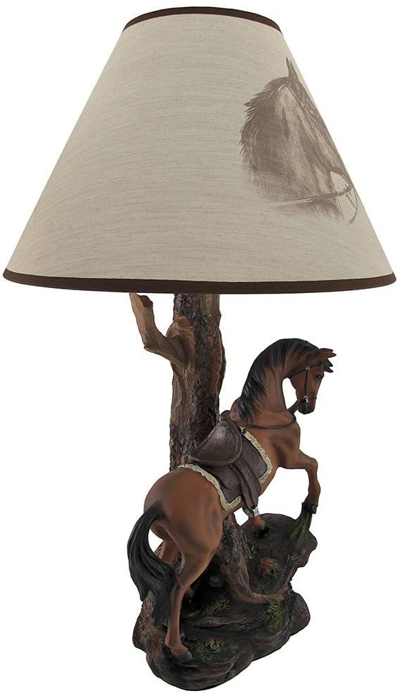 【ライト・ファンタスティック」プリントシェード付き 鞍馬(鹿毛の馬)ランプ・スタンド素朴なカントリー装飾ランプ ロッジ・ウエスタン装飾 牧場 産駒 競馬場 ホース・パブホースカフェ(輸入品)】
