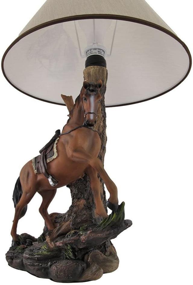 「ライト・ファンタスティック」シェード付き 鞍馬(鹿毛の馬)ランプ・スタンド カントリーランプ ロッジ・ウエスタン牧場 競馬場(輸入品)