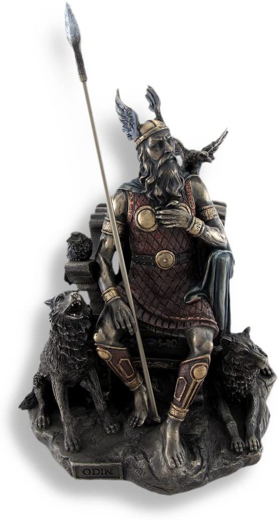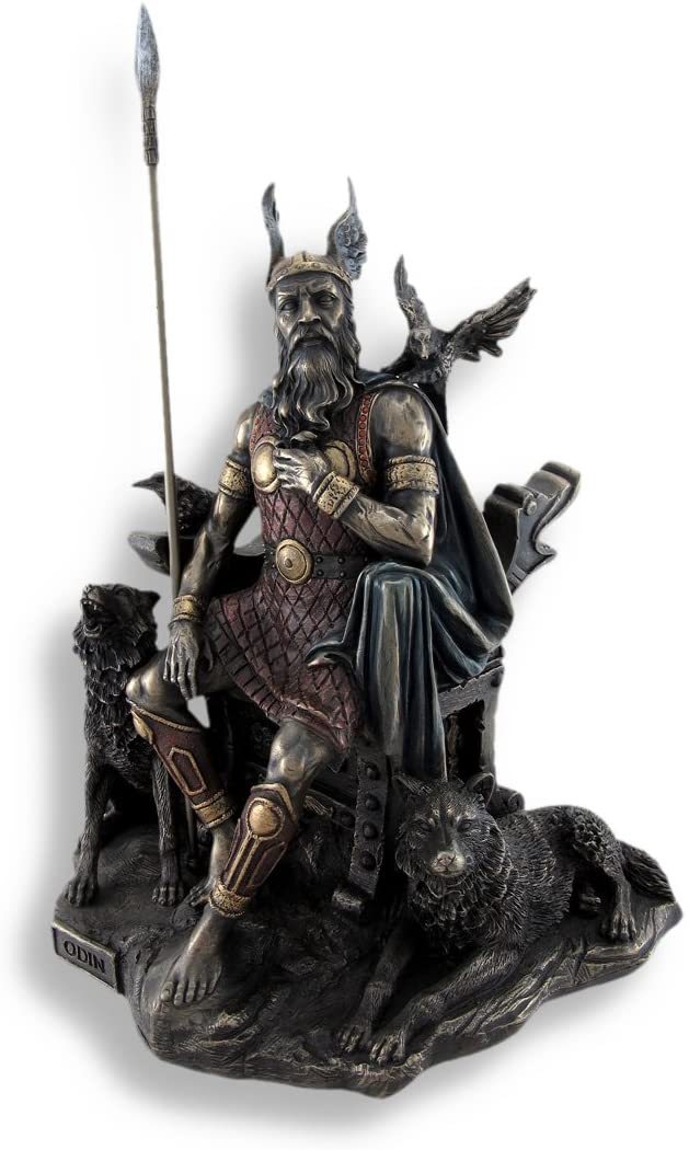 狼と烏をつれ、槍を持って座っている 北欧神 オーディン ブロンズ風彫像/ 戦争と死の神 詩文の神 ファンタジー プレゼント贈り物(輸入品)