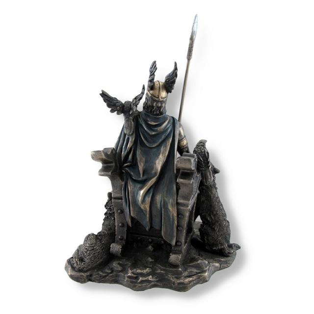 【北欧神 狼と烏を連れ、槍を持って座った、オーディン彫像 ブロンズ風彫刻/戦争と死の神 詩文の神 ファンタジー プレゼント贈り物(輸入品)】