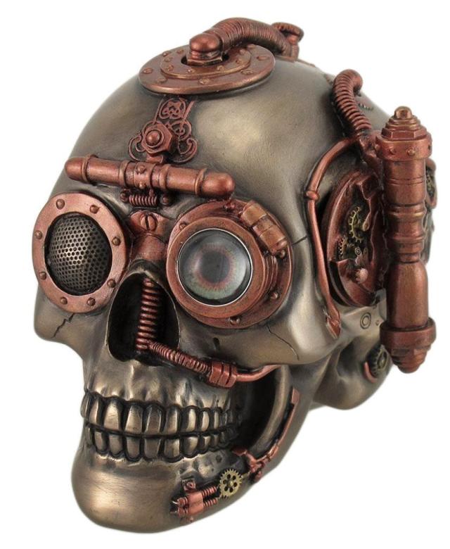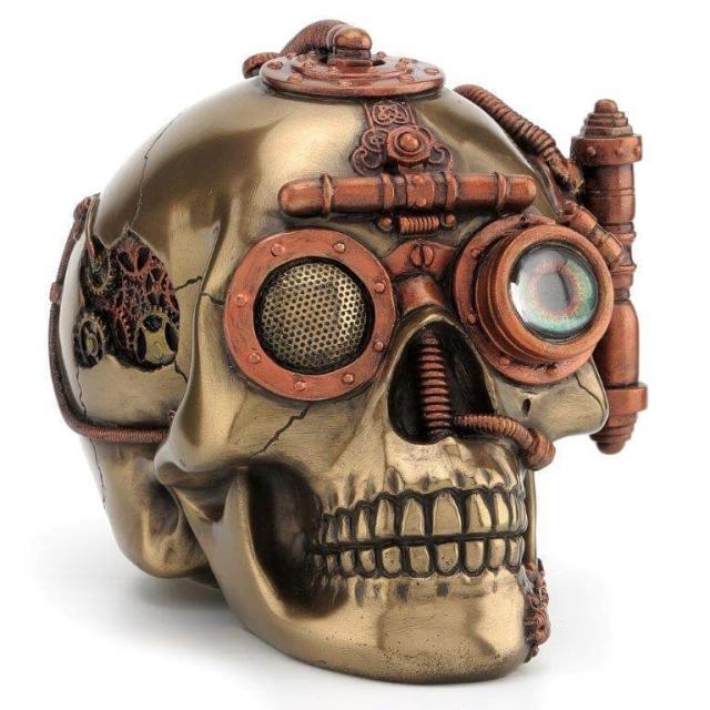 スチームパンク風 秘密の引き出し(小物箱)を持った、スカル(頭蓋骨)彫像置物 彫刻/ ハロウィン ゴシックホラー サイバーパンク(輸入品